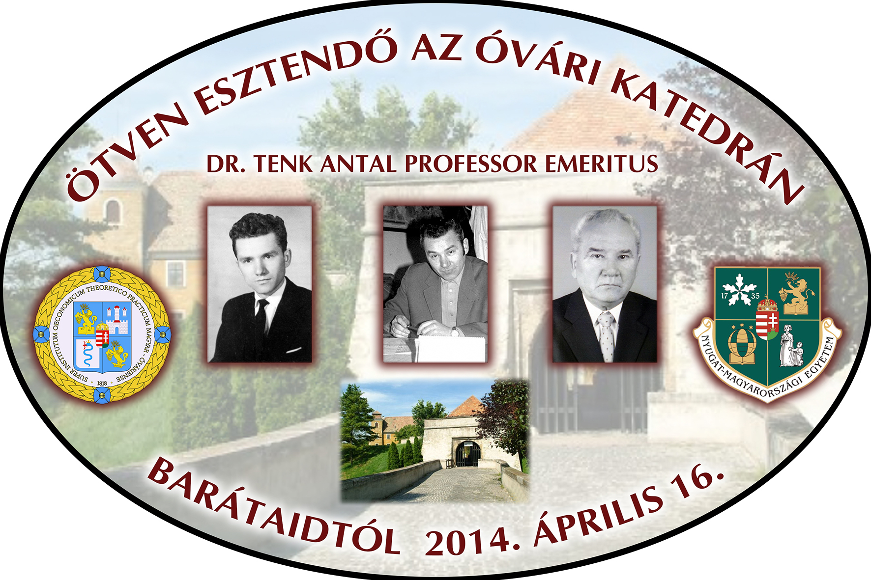 Dr. Tenk Antal részére készült köszöntő emléklap tanári jubileuma alkalmából (1. oldal)