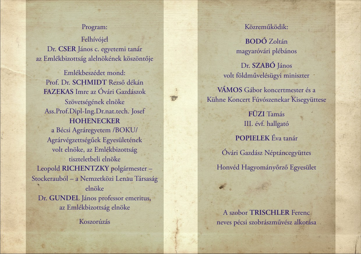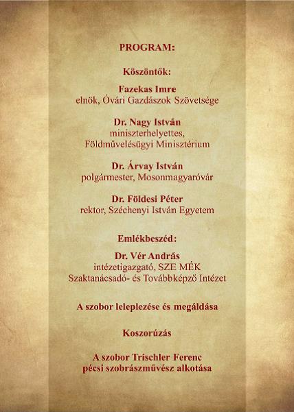 A Fekete István szobor avatására készült meghívó (2. oldal)