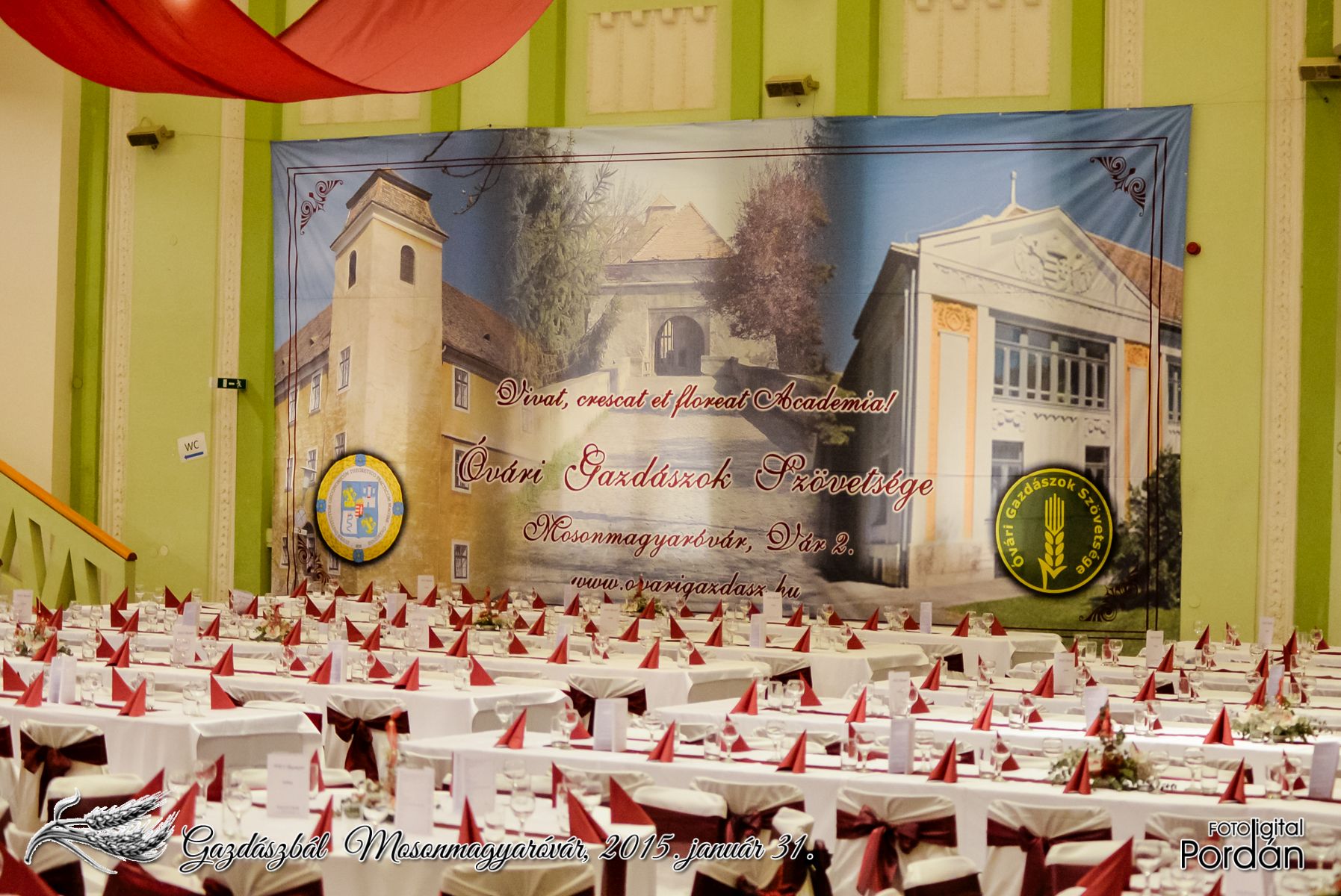 Az Óvári Gazdászok Szövetségének 4x8 méter nagyságú molinója (A Gazdászbál megnyitója előtt készült kép)