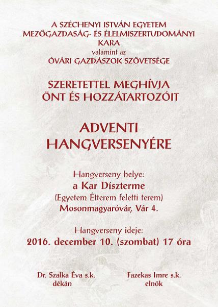 Az Adventi Hangverseny meghívója (1. oldal)