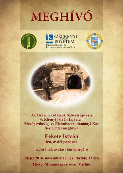 A Fekete István szobor avatására készült meghívó (1. oldal)