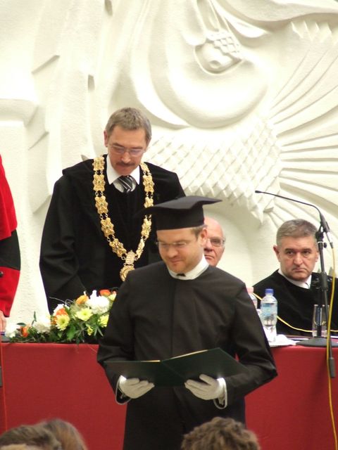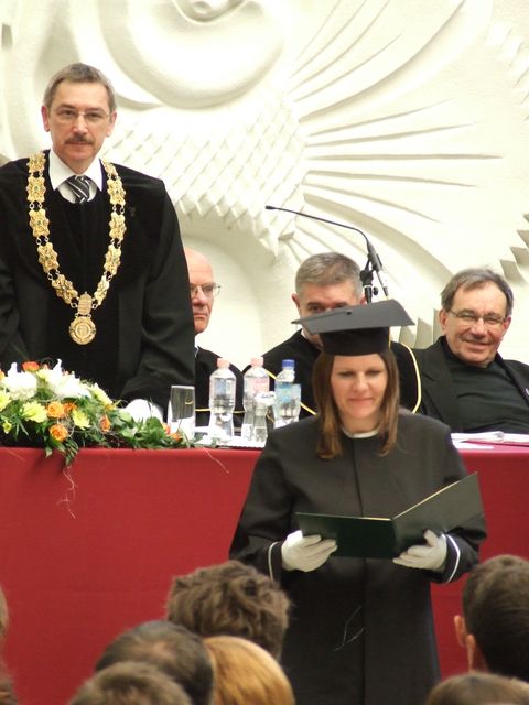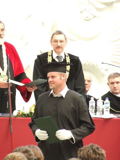 A hagyományoknak megfelelően a diplomaátadó kari tanácsülésen vehették át doktori okleveleiet a PhD képzést sikeresen abszolváló doktoranduszok. Idén Prof. Dr. Faragó Sándor három új doktort avatott a karon: Dr. Benke Hedvig, Dr. Varga Jenő és Dr. Vér András a tudományterület különböző ágaiban dolgozva készítették el értekezéseiket és védték meg azokat sikerrel.