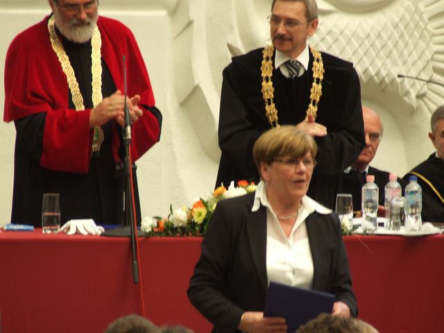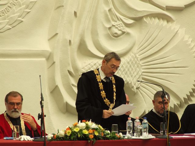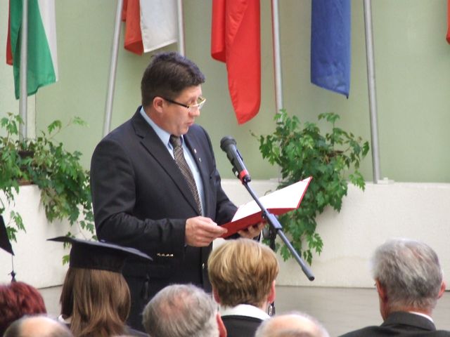 Az ünnepi kari tanács bevonulása, és a Himnusz eléneklése után elsőként Prof. Dr. Faragó Sándor rektor köszöntötte a friss diplomásokat és a vendégeket. Az elmúlt évek tanulmányait lezárva hivatást szereztek. A mezőgazdaság ugyanis nem szakma, hanem küldetés - emelte ki a 195 esztendeje fennálló Alma Mater idei tanévzáró ünnepségén elhangzott beszédében. A Nyugat-magyarországi Egyetem vezetője hozzátette: a most végzett gazdászok az ország legnagyobb kincsével, a termőfölddel fognak sáfárkodni. Emellett reményét fejezte ki, hogy nem csak tudással, hanem kellő elkötelezettséggel és szakmaszeretettel is felvértezték magukat az elmúlt évek alatt.