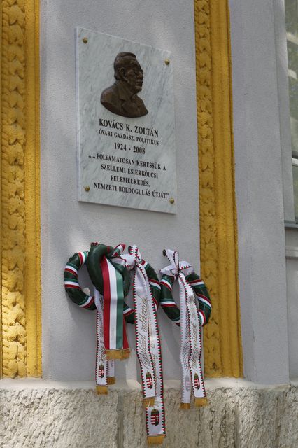 Kovács K. Zoltán életútjának ismertetését követően a rendezvény zárásaként Dr. Semjén Zsolt miniszterelnök-helyettes emlékezett meg a hazai kereszténydemokrata mozgalom egyik újjászervezőjéről, kimagasló alakjáról, egykori piarista diákról és óvári gazdászról, amelyet az egyetemi kar "B" épületének falán elhelyezett bronz domborművel ellátott emléktábla avatása követett. Lebó Ferenc győri szobrászművész alkotását Farkas István piarista rendházfőnök, kari lelkész áldotta meg.