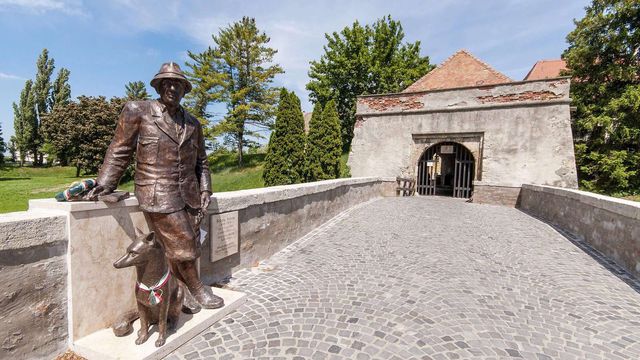 Fekete István szobra a magyaróvári várhídon, Trischler Ferenc alkotása (Forrás: nepszava.hu)